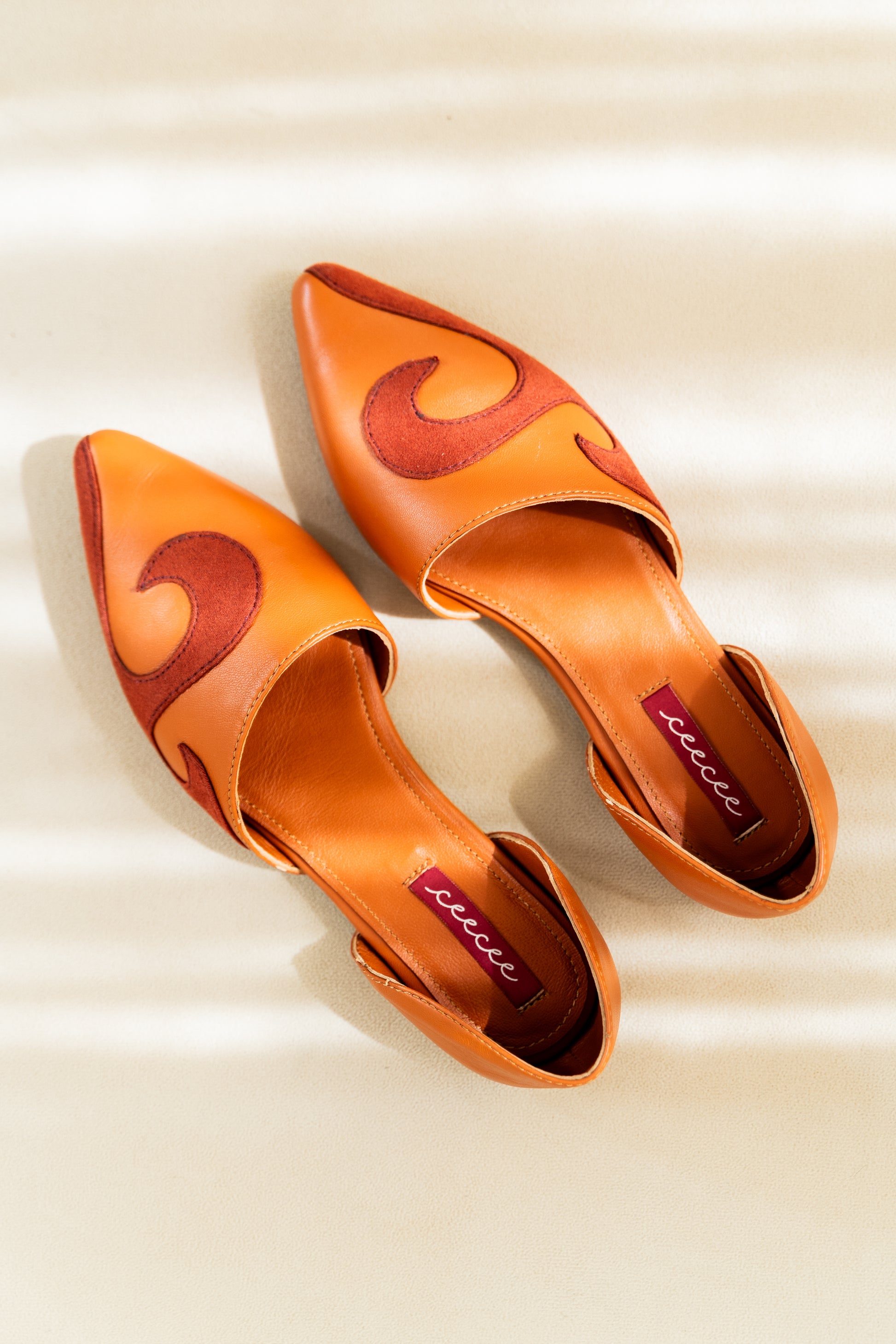 Made in genuine leather with suede swirl accents, this pointed and rusty flat is our take on subtle statements and soft geometry